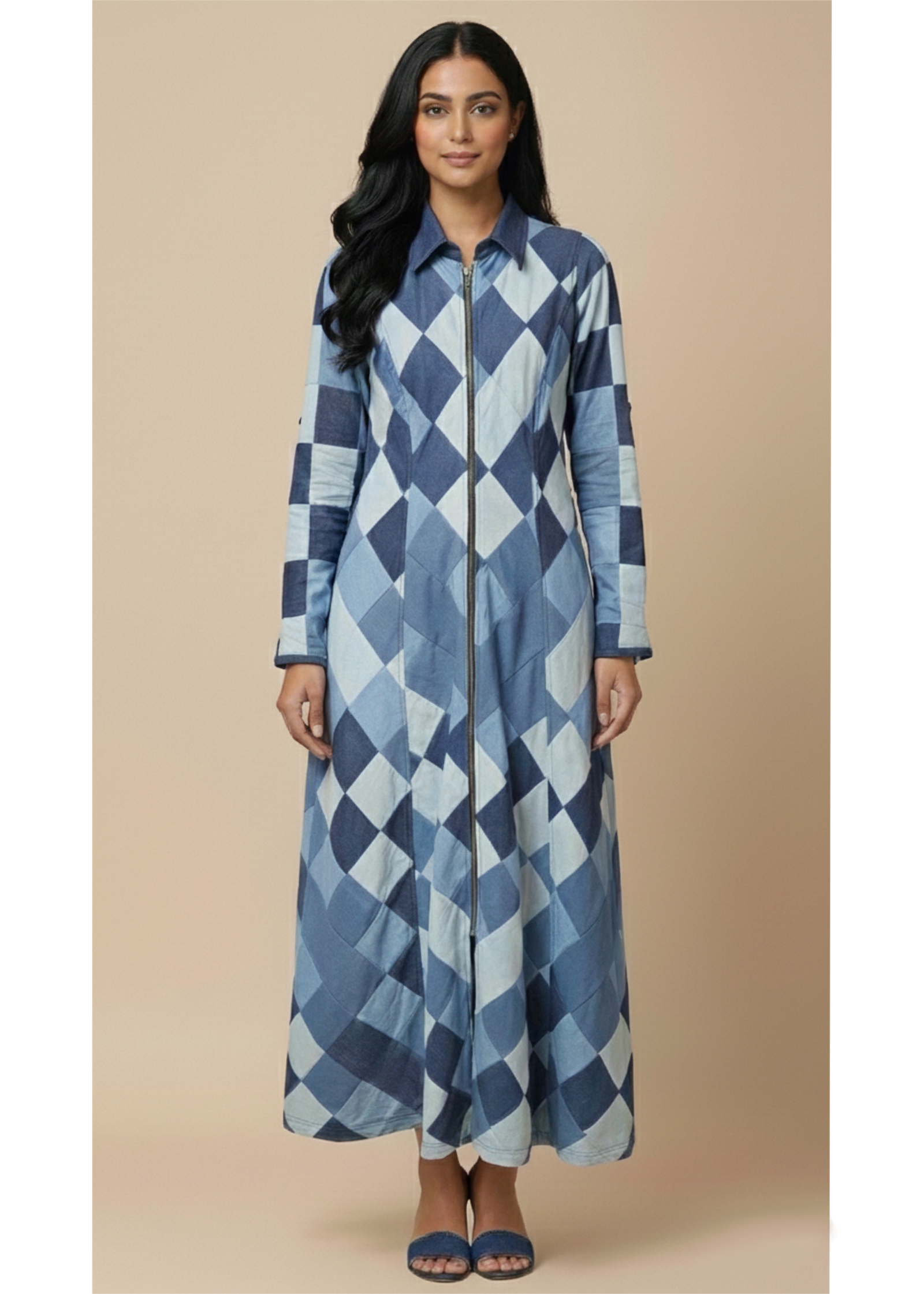 hence the patch placement and shades of blue will be different for each and every garment, making every piece unique for its muse